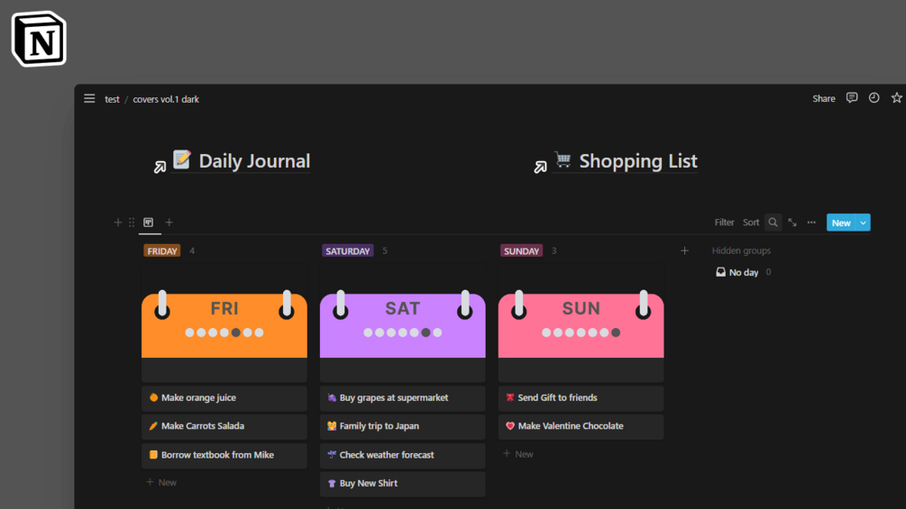 - vol. 1 - Calendar Days | 128 covers ( 8 colours / Mon - Sun + blank / light & dark mode )